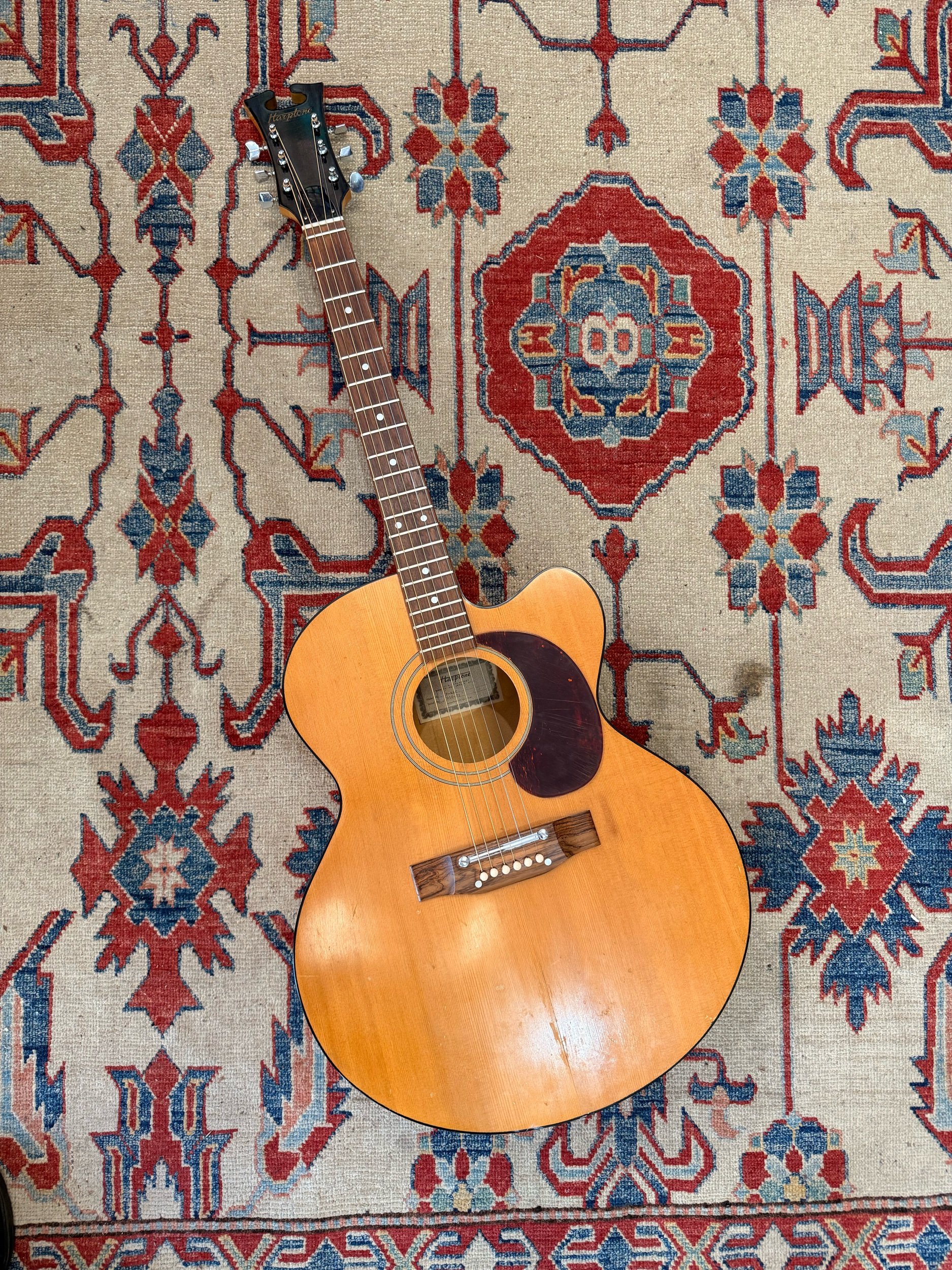 This one shows honest vintage wear in all the right places—just enough to let you know it’s been loved, but still structurally solid and ready for another lifetime of songs. Lightweight, resonant, and easy to play, it’s the kind of guitar that makes you forget about specs and just keep playing.